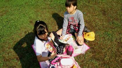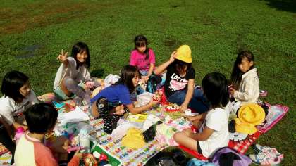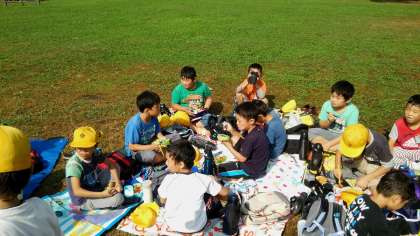 朝方まで雨が降っていて、どうなるかと思いましたが見事に持ち直し、暑いくらいになっているようです。楽しいお弁当タイムです。