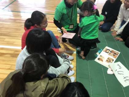 お母さんからいろいろな資料をもとに具体的なお話をしていただくとともに、赤ちゃんとしっかり触れ合う活動もさせていただきました。