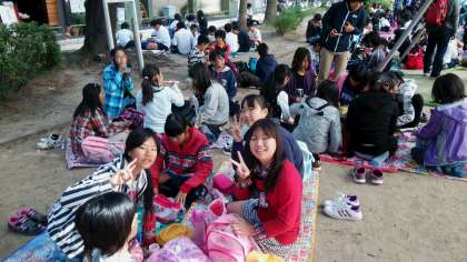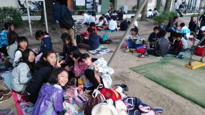 こころの劇場「魔法をすてたマジョリン」を鑑賞した後、前の公園でお弁当を食べました。