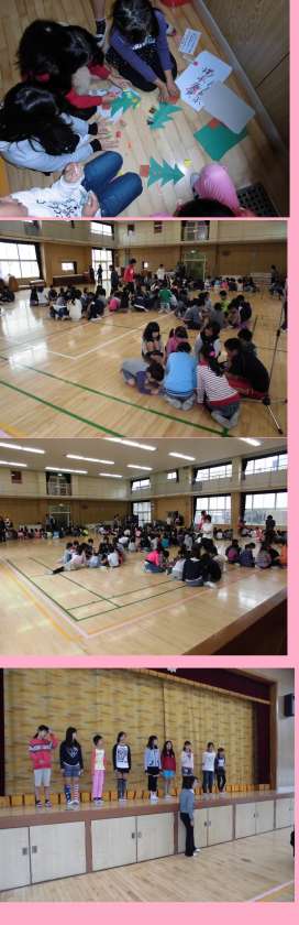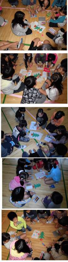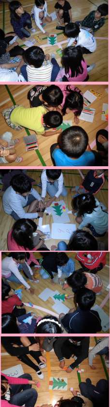 今回は、掲示委員会が企画しました。たてわり班で「クリスマスツリー」を作りました。12月の玄関掲示になります。掲示委員会で行事を作り掲示します。
