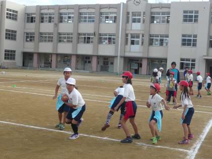 4年生も「フラッグフットボール」の学習を通して、様々な学びを重ねてきています。