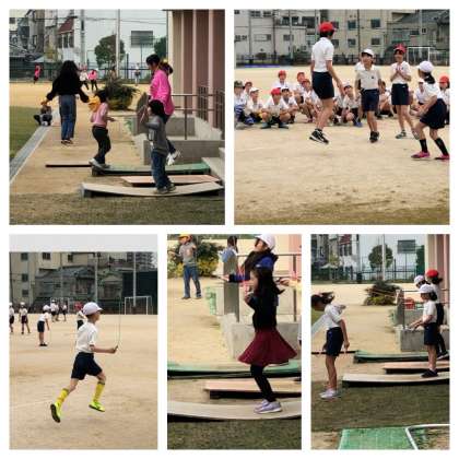 現在、各学年でなわとび運動に取り組んでいます。体育の時間や休み時間に練習している様子がよく見られます。