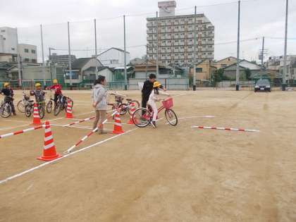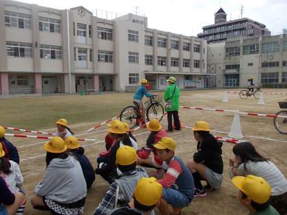 3・4年生と同じように自転車の乗り方について学習しました。飛び出しや信号無視による事故が生野区は多く発生しているので交通ルールをしっかり守って、命を大切にしてほしいとおっしゃっていました。