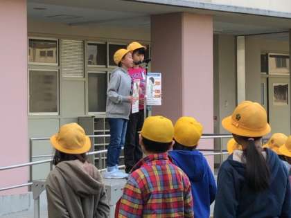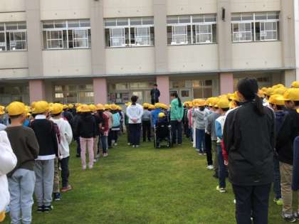 今日の児童朝会では、健康委員会の児童から、今週の「姿勢週間」の話もありました。