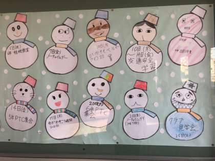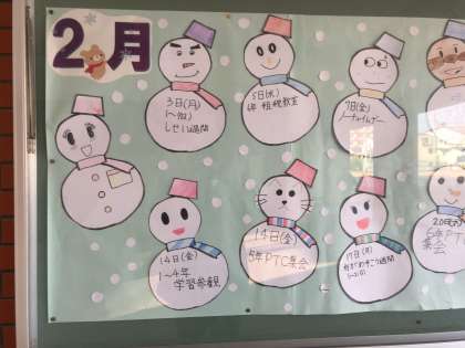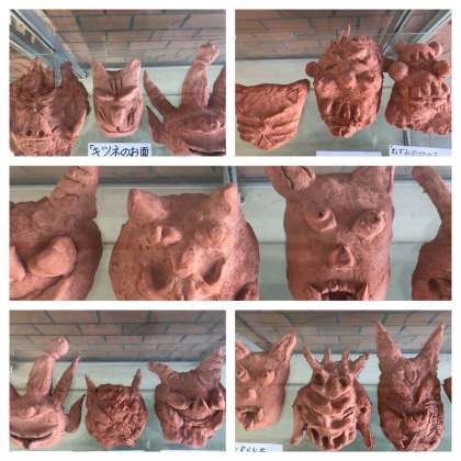 作品棚には、4年生制作のいろいろなお面が飾られています。