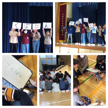 学校に関連のあるものを、文字をバラバラに出題されます。グループでしっかり話し合って答えを見つけていました。