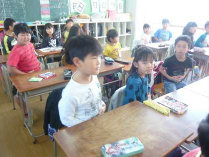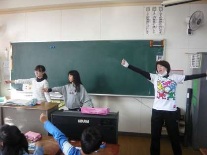 健康週間が終わったので、月曜日の児童朝会、そして火曜日の読書タイムの後にノビノビたいそうをします。