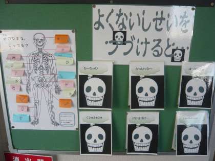 体の各部分の骨の名前やよくない姿勢を続けていると悪い影響が体に出てくることを教えてくれています。