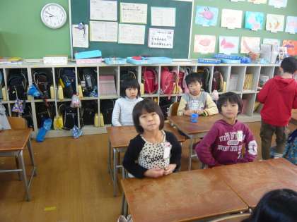 2年1組では、すでに読書タイムを終えて、健康調べを係の子どもたちが前に出て行っていました。