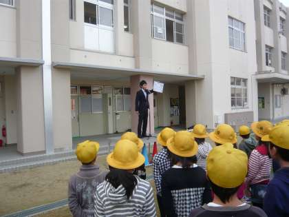 日曜学習参観ですが、月曜日が代休になりますので芝生の上での児童朝会を行いました。