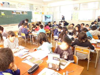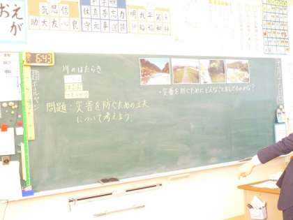 5年生は、理科で「川の流れと災害」の学習で、川に災害を防ぐ工夫がされていることを見つけてどんな工夫があるか考えました。