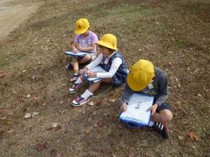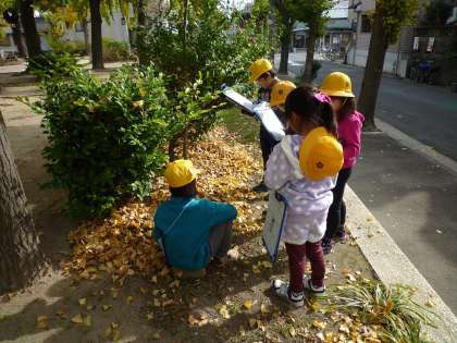 生活科の学習で、春にも公園で春見つけをしています。今日は「秋見つけ」として木々や草花、空気、鳥の声などの様子を見たり聞いたり、また、木や葉っぱに触れてみて公園を観察してきました。葉っぱの色が赤い、黄色いなどやあじさいの場所には葉っぱしかないなど、その他にもいろいろな物や様子が変わっていることを感じ取ってきました。
