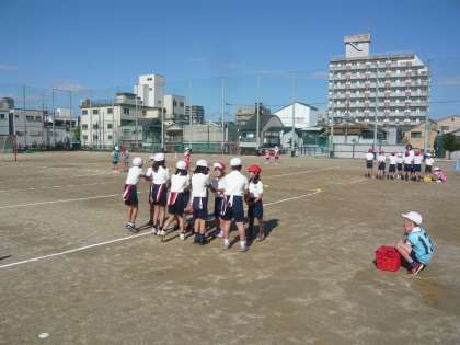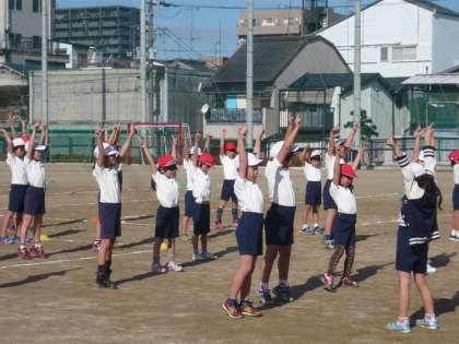 準備運動にノビノビたいそうを取り入れて、十分に心と体をほぐして、いよいよゲームです。