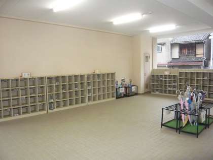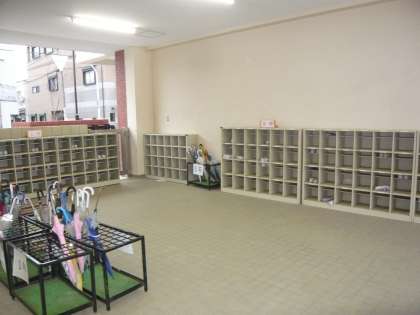休み明けの児童登校前の靴箱、傘立てです。