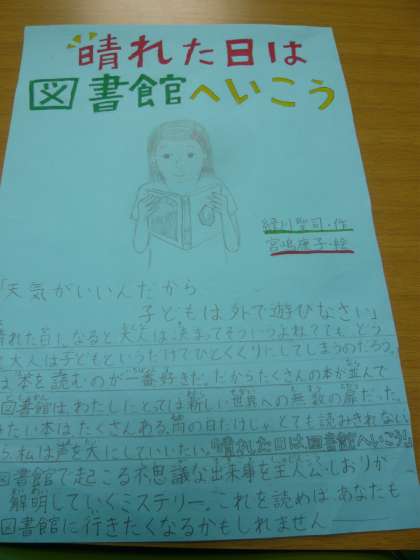 図書委員会の児童が、図書の紹介ポスターを作成していました。