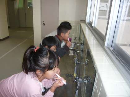最後に1年生が歌っている「みがいてみがいて歯歯歯」という曲を流しました。