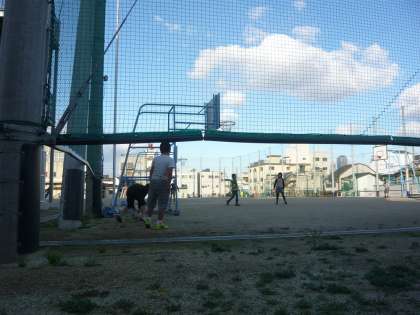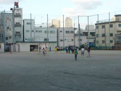 北風が吹きすさぶ中、元気な子どもたちが教室から飛び出して、サッカーやキックベースボールをしていました。