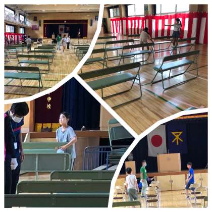 今日は前日準備ということで、6時間目に6年生が講堂の準備や清掃を頑張ってくれました。