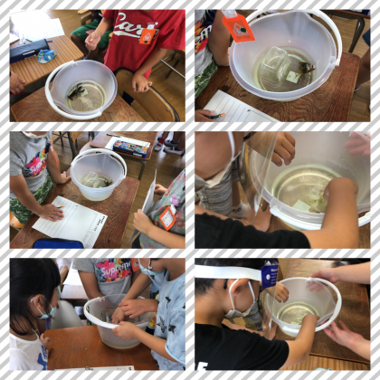 今日の2年生の生活科は、クラスで大切に育てているザリガニの観察でした。