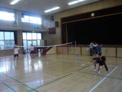 バドミントンと、卓球をそれぞれのチームに分かれてしていました。