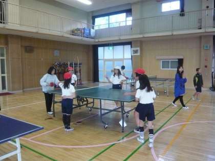 「バドミントン・卓球にチャレンジ」は、講堂で活動していました。