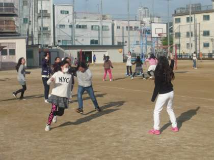 5年生女子は、先日来、長縄跳びで「八の字まわり跳び」を楽しんでいます。