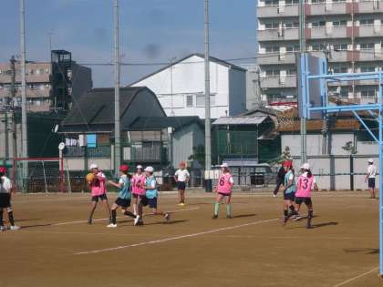 2コートを3チームつずつに分かれて、それぞれローテーションしてゲームをしていました。