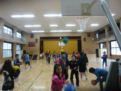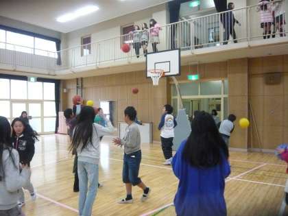 子どもたちの笑顔と歓声が狭い講堂に響いていました。
