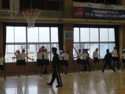体育の特別授業として、バスケットボールの指導をプロバスケットbjリーグ大阪エベッサのジュニアスクールコーチの方にしていただきました。