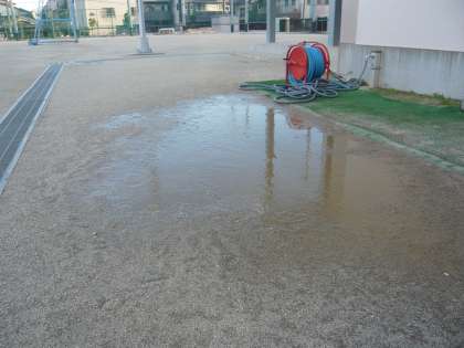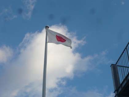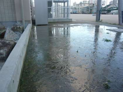 掲揚している国旗は、強風にちぎれんばかりでしたし、運動場に残った水たまりは氷がはっていました。