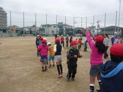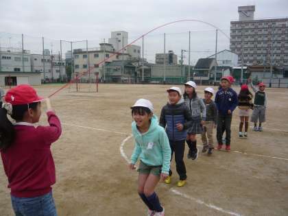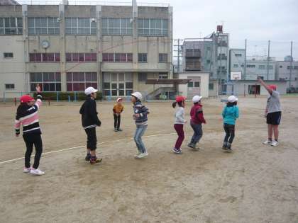 寒さに負けずにみんなでジャンプをしているうちに体の内側から暖まってきます。