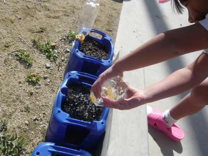 3時間目の体育が終わった後、水やりをしていました。