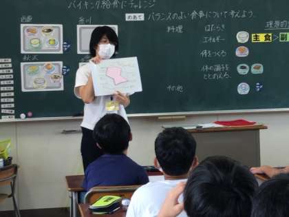 6年生の栄養学習は「バランスのよい食事について考えよう」というテーマの学習でした。