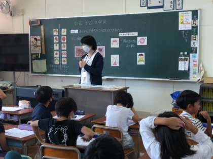 今日は、北鶴橋小学校の栄養教諭にお越しいただき、2年生の栄養指導をしていただきました。