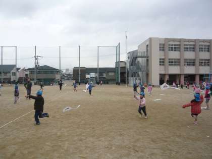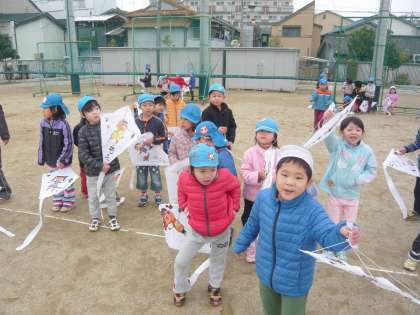 東桃谷幼児の園の園児たちが、たこあげに来てくれました。