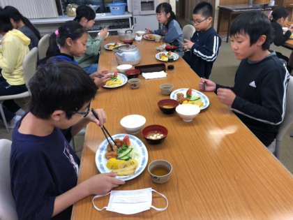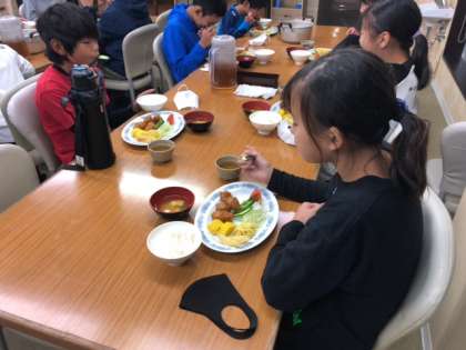 食事係の挨拶があり、夕食が始まりました。たくさん活動した後なので、みんな美味しくいただいています。