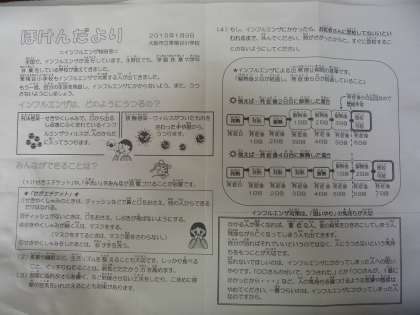 先にお知らせしていますが、保健室から緊急の保健だより(インフルエンザ特別号)が出ています。