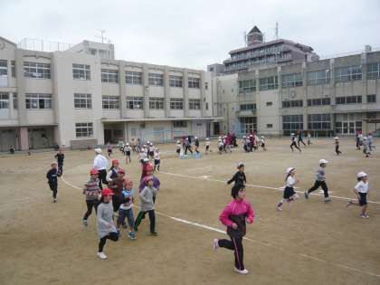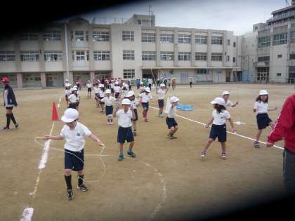 2時間目の学習が終わると、子どもたちは運動場に出てきます。