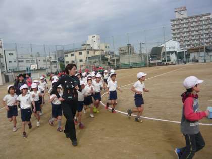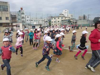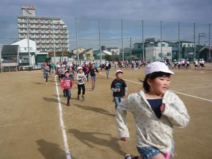 6年生が学年休業でいませんが、1年生から5年生まで元気よく走りました。