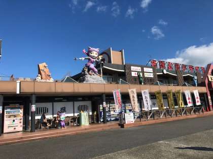 休憩所の名阪上野 忍者ドライブインに着きました。子ども達はバスの中で楽しく過ごしています。
