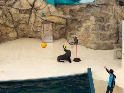 アシカショーが続きます。技が決まるたびに、子ども達は大きな拍手を送っています。