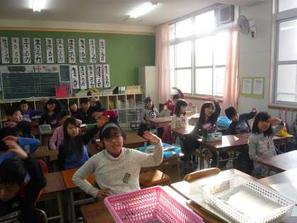 3年生は、欠席が多かったのですが、出席している子どもは元気よくノビノビたいそうをしていました。