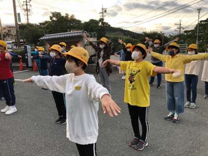 さあ、朝のつどいです。みんな元気に起きてきました。しっかりラジオ体操もします。