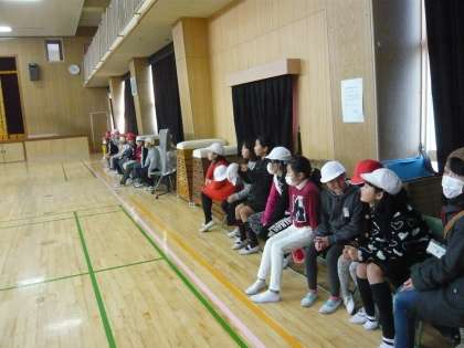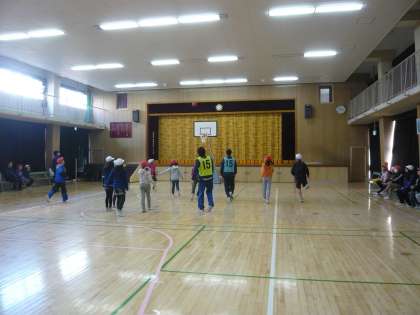 当初は、家庭科室で調理活動をする予定でしたが、インフルエンザ・風邪様疾患で休む子どもが増えたため、急遽スポーツ活動に変えたということです。
