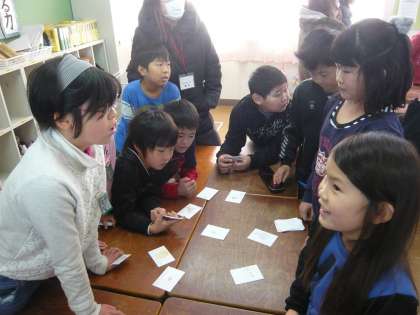 自分たちで考えただけあって、担任の大坪教諭が読み札を読み上げると同時に手が出ていました。