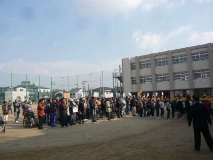 校長先生は、「自分の命は、自分で守る」「みんなの命は、みんなで守る」という話。坂井会長様からは、地域合同防災訓練の意義についてお話しいただきました。