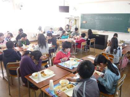 給食調理員が、6年生をはじめ子どもたちに心を込めて作った給食。