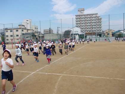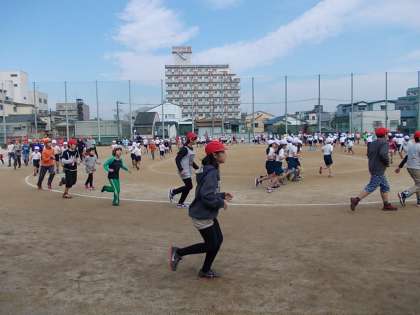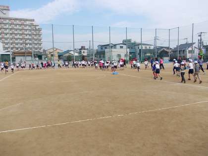 かけあしタイムになると、各学年の場所でなわとびをしてからかけあしになります。