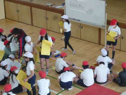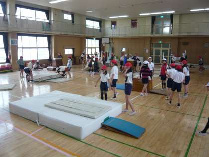 今日は、工夫した場で「台上前転」を練習して、技ができない子どもはできるように、できる子どもは技をより洗練させるように取り組んでいました。