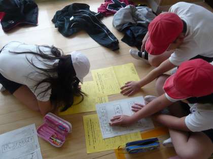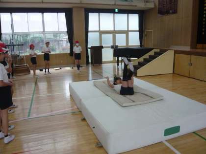 工夫した場でチャレンジする子どもたち。技の完成目指して頑張っています。